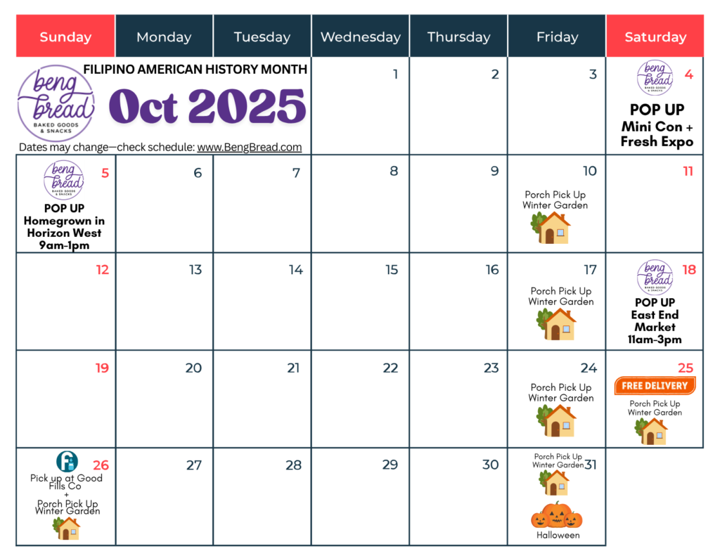 Order by Tuesday for Pick Up, Delivery, Pop Ups on Saturday/Sunday!